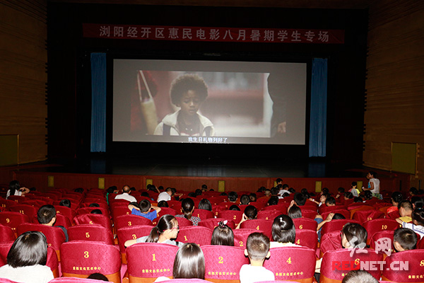 浏阳经开区管委会推出的8月暑假学生免费电影专场活动现场。