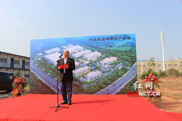 浏阳经开区党工委书记郭力夫出席今汉制药项目开工仪式并宣布开工。