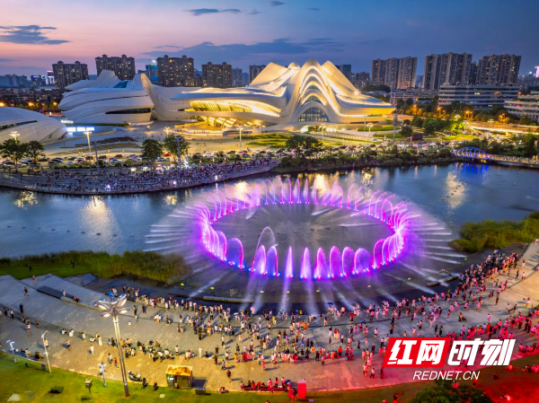 梅溪湖音乐喷泉。