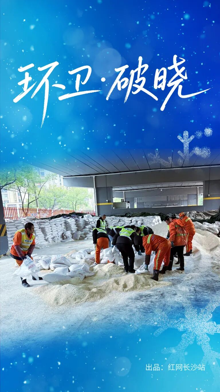 湘江新区环卫中心驾驶员李喜乐和同事们已进行四轮撒盐作业。“机械主攻干道,人工补齐盲区”——他们的眼睛熬得通红,却让每一座桥、每一个坡、每一个风口,都有了对抗寒冷的底气。