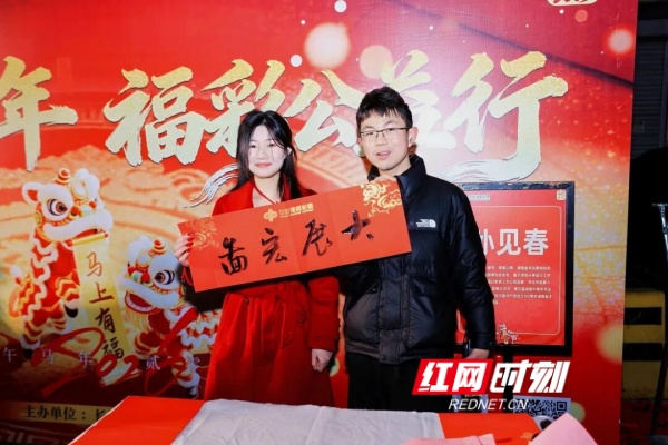 红网时刻新闻2月13日讯(记者 贺卫玲)2月11日傍晚,华灯初上,长沙四方商贸城东广场上响起喜庆的旋律,“暖心中国年 福彩公益行”系列公益活动在此温情落幕、圆满收官。活动现场特意邀请了雷勇、孙见春两位书法老师,挥毫泼墨为群众写“福”字、送春联,浓郁的年味与墨香交织,吸引附近市民纷纷驻足,踊跃前来迎“福”纳祥,共赴这场南方小年之约。