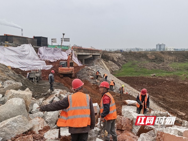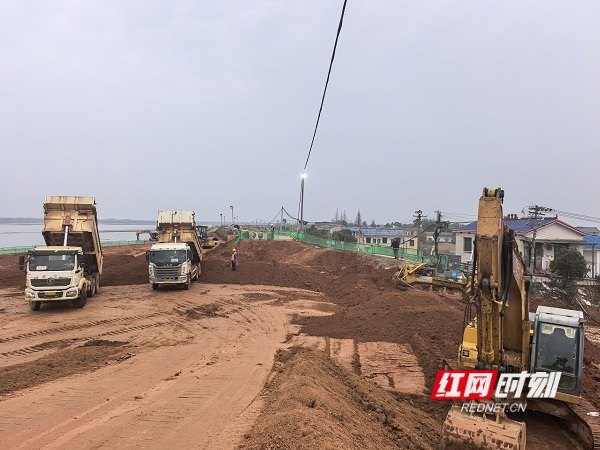 春寒料峭,湘江东岸苏蓼垸(天鹅咀至夹河段)防洪整治工程(一期)现场,一片火热景象。100多名施工人员及管理人员,连同挖掘机、大型推土机等40台大型设备正开展堤身土方填筑,临河一侧六角块铺贴、二级平台和背水面附属工程施工。“今年汛期前要完成所有穿堤结构物及临河一侧二级平台、边坡草皮铺设等所有附属工程。”现场负责人张俊表示,整个工程建设在有序推进,确保安全度汛。