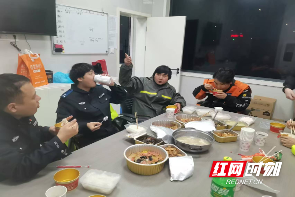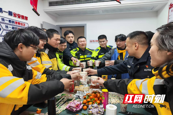 除夕夜,坡子街的交警岗亭亮着暖黄的灯。外卖小哥们卸下头盔,围坐在一起,桌上摆着刚出锅的饺子,电视里放着春晚。一位小哥咬了一口饺子,烫得直咧嘴,却笑着说:“在长沙跑了3年外卖,头一回在岗亭吃上年夜饭。”开福区湘雅路中队、望城月亮岛中队的岗亭里,同样的场景正在上演。
