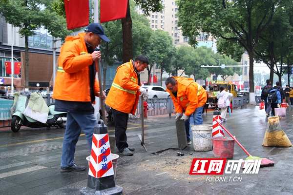 市政人员及时处理路面问题,让大家新年所行皆坦途。