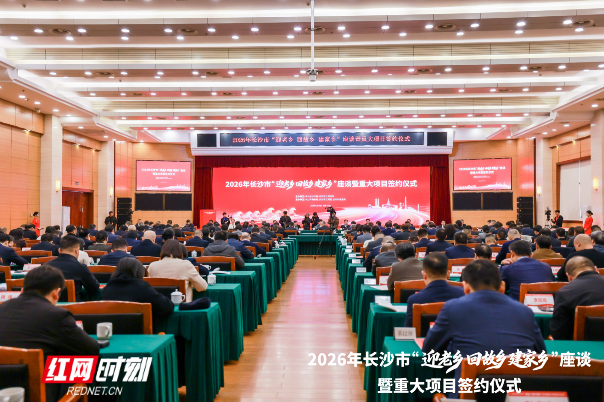 红网时刻新闻2月25日讯(记者 赵翼鹏)2月25日,长沙市会议中心内高朋满座,来自海内外的湘商精英、杰出校友、院士专家如约而归,共赴这场新春邀约——2026年长沙市“迎老乡 回故乡 建家乡”座谈暨重大项目签约仪式。