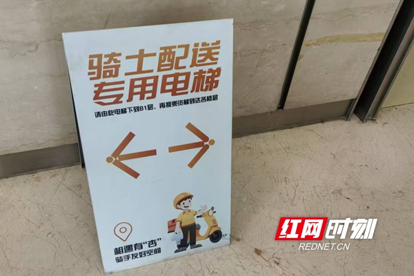 “骑士配送专用电梯”指示牌。
