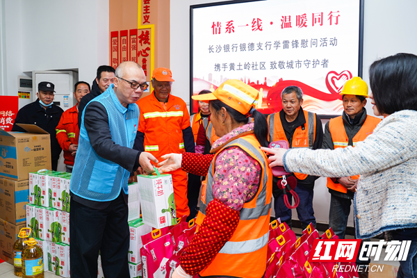 活动现场,社区工作人员与长沙银行银德支行的志愿者们将一份份承载着关爱的生活物资送到环卫工人手中。大家围坐一起、亲切交谈,详细了解了环卫工人们的工作强度、身体状况及实际需求,感谢他们用辛勤汗水换来辖区环境的整洁靓丽。