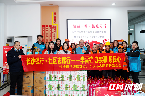 红网时刻新闻3月16日讯(通讯员 汪阿敏)三月春风拂面来,雷锋精神暖人心。为深入践行“奉献、友爱、互助、进步”的志愿精神,3月16日上午,长沙市天心区金盆岭街道黄土岭社区联合共建单位长沙银行银德支行,共同开展学雷锋活动,对辖区环卫工人进行关怀慰问。