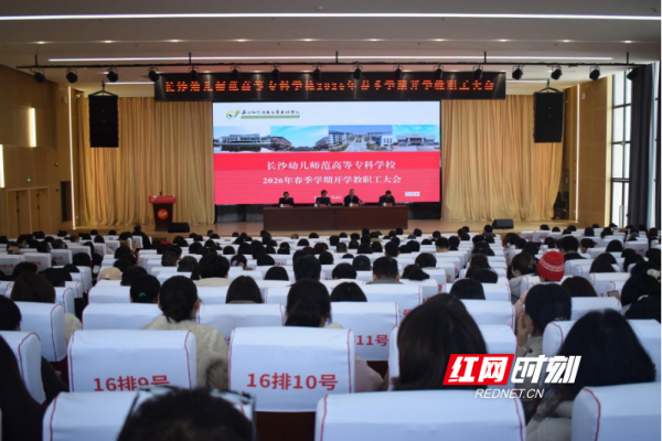 红网时刻新闻3月6日讯(记者 贺卫玲 通讯员 彭美兰)3月4日,长沙幼儿师范高等专科学校在图书馆报告厅召开2026年春季学期开学教职工大会。党委书记肖思源主持会议,全体领导班子成员、所有教职员工参会。
