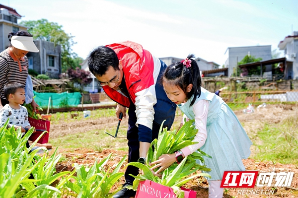 孩子们在采摘蔬菜、亲近泥土的同时,志愿者引导他们观察植物生长、描述自然景象,让书本知识与真实体验彼此印证,实现了“读万卷书,行万里路”的延伸。