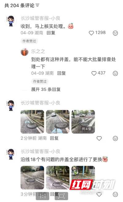 下午四点,长沙市民“@高校圈那些事”刷着小红书,随手拍了一张照片@长沙城管客服-小良:“小心,井盖有坑,呼叫长沙城管!”