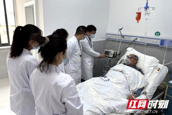 在长沙市第三医院驻点专家的指导下,医疗团队迅速启动无创通气治疗。为老人佩戴无创呼吸机后,治疗效果立竿见影:血氧饱和度迅速升至98%,达到正常水平。老人自觉胸闷症状明显改善,呼吸困难得到显著缓解,精神状态随之好转。
