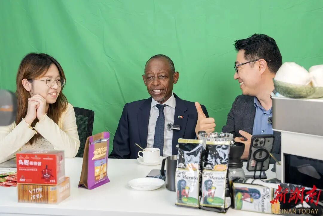 卢旺达驻华大使詹姆斯・基莫尼奥做客长沙直播间。