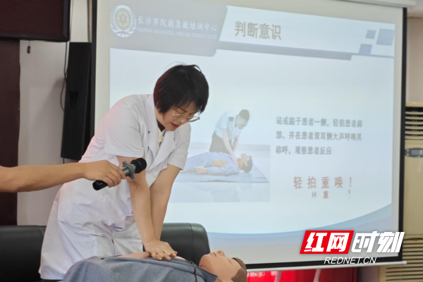 马坡岭街道社区卫生服务中心张叶医生现场指导急救方法。