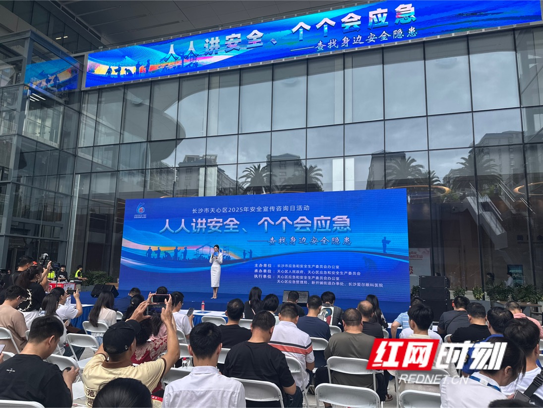 红网时刻新闻6月12日讯(记者 余雅琴 通讯员 宋进源)6月12日上午,长沙市天心区2025年安全宣传咨询日活动在新开铺街道长沙爱尔眼科医院正式拉开序幕。本次活动由长沙市应急和安全生产委员会办公室主办,天心区人民政府、区应急和安全生产委员会承办,活动紧扣“人人讲安全 个个会应急 查找身边安全隐患”主题,旨在通过宣传隐患排查等相关知识,进一步强化全区安全发展理念,以多元形式推动安全理念深入人心。