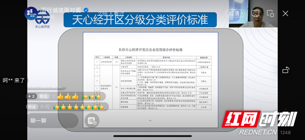 直播开始,信用领域专家化身 “云端讲师”,围绕《湖南省社会信用条例》《长沙市市场主体信用分级分类管理办法》《长沙天心经济开发区信用分级分类管理办法》展开深度解读。通过鲜活案例与通俗语言,专家们将晦涩的政策条文转化为易懂的“信用指南”,不仅为企业揭开信用政策红利的“面纱”,更明晰了市场主体在信用体系建设中的权责边界,为园区企业合规经营、行稳致远点亮政策明灯。