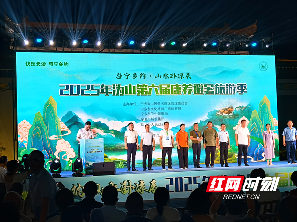 7月18日晚,沩山风景名胜区密印景区游客服务中心前坪流光溢彩、人声鼎沸。主题为“与宁乡约·山水卧凉辰”的2025沩山第六届康养避暑旅游季开幕,为市民游客开启清凉盛宴。
