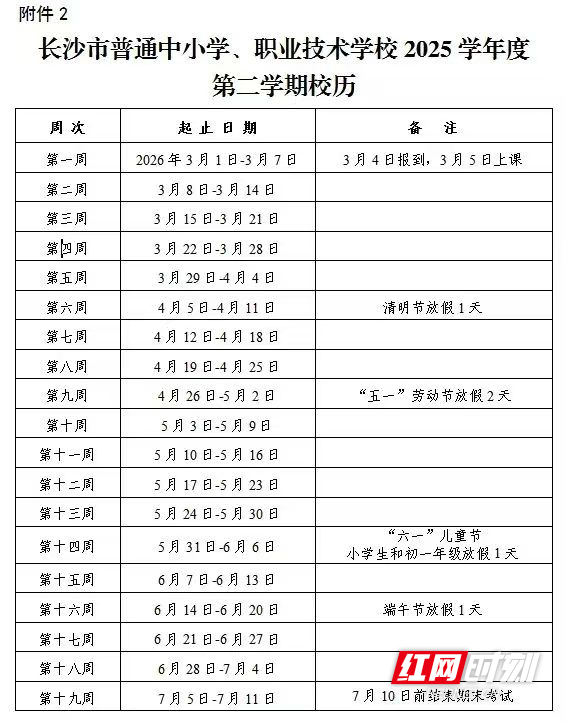 红网时刻新闻8月18日讯(记者 贺卫玲)你的暑假余额不足啦,根据长沙市教育局公布的长沙市普通中小学、职业技术学校2025学年度校历安排,今年秋季学期定于8月31日报到,9月1日上课。