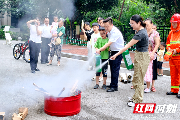 红网时刻新闻8月12日讯(通迅员 郝佳佳 平静)“遇到火情,握稳灭火器,先拔保险栓,对准火苗根部压把手!”近日,长沙市天心区金盆岭街道涂新社区联合金盆岭街道社工站在汇金国际小区开展了一场干货满满的消防安全培训,社区居民、物业人员和社区工作人员等30余人在实操演练中解锁“防火技能包”。