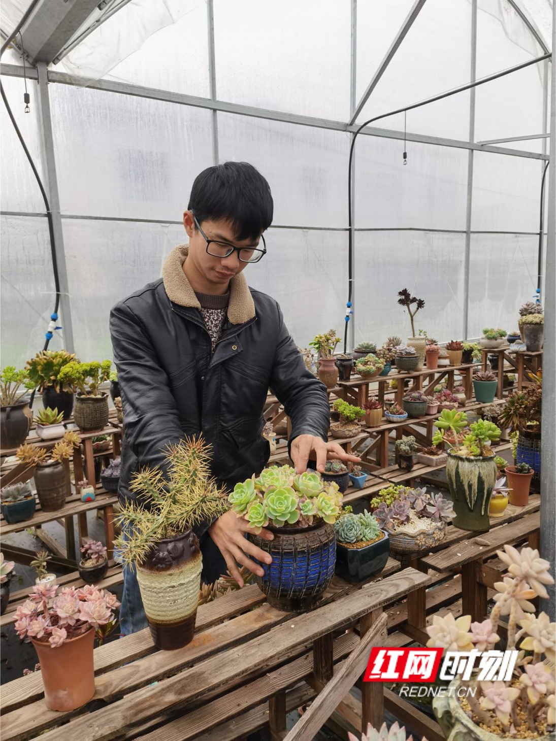 “谭老师”的田间课堂:他被中南林科大涉外学院聘为“创新创业校外导师”,被向阳中学聘为“花卉种植社团指导老师”,被枫树小学聘为“校外辅导员”。每个星期,孩子们清脆的笑声都会洒满大棚。他教他们认识植物,体验叶插的魔法,也在他们心里种下热爱自然、勇于创新的种子。“看着娃娃们眼里有光,比卖一万盆多肉还开心!”