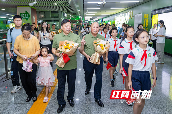 红网时刻新闻8月1日讯(记者 胡芳 实习生 林珑 李娜)8月1日上午,长沙地铁四方坪·双拥站,一场特殊的“八一建军节”主题活动温情上演。来自不同行业、不同时代的8位退役军人代表齐聚一堂,在城市地铁空间吹响“集结号”,庆祝中国人民解放军建军98周年,致敬“最可爱的人”。