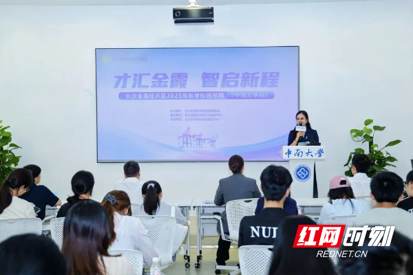 金霞经开区企业服务中心负责人从园区战略布局、产业核心竞争力、科创生态构建,到人才住房、就业补贴等服务保障政策,全方位展现金霞经开区的发展潜力与引才诚意。“政策讲得细、福利看得见,对我们留湘就业很有吸引力。”现场学生纷纷表示,宣讲内容精准契合求职需求,让大家对扎根金霞发展更有信心。