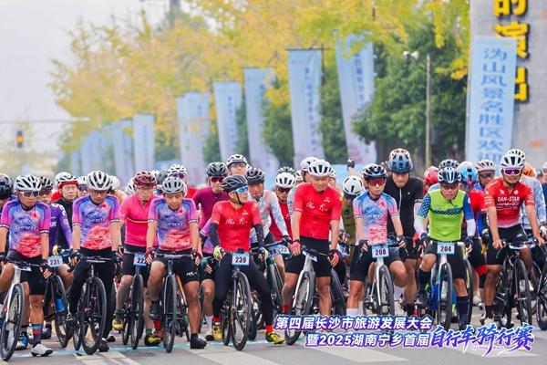 红网时刻新闻10月26日讯(记者 彭佩 通讯员 谢瑶)晨光初醒,拂过炭河古城的檐角,鼓声铿锵,划破沩山静谧的时空。10月26日,第四届长沙市旅游发展大会子活动暨“与宁乡约·骑遇山水间”宁乡首届自行车骑行赛,在风景秀丽的沩山国家级风景名胜区激情开赛。历史与自然的交响中,485名自行车骑手如离弦之箭,闯入一幅缓缓展开的山水长卷。