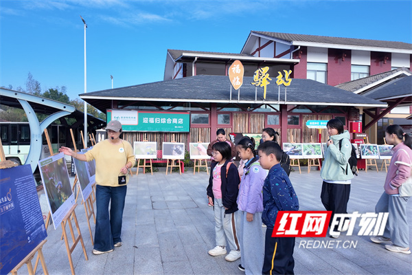 初冬的影珠山层林叠翠,生态资源富集。上午9时,参与家庭有序集结活动营地,首个环节聚焦森林科普展区。图文并茂的展板系统呈现湖南地区生物多样性概况,红嘴蓝鹊、北草蜥、杠板归等本土物种的习性介绍引发青少年驻足探究。“我见过红嘴蓝鹊!” 艺涵小朋友的兴奋呼喊打破了展区的宁静,讲解员随即接过话茬,用生动的语言补充:“这种鸟确实比较常见且特别厉害,不仅能抓蛇,还经常和其他动物‘打架’呢!” 鲜活的互动与通俗化的科普解读,瞬间点燃了孩子们的求知热情,让专业生态知识变得可感可及。