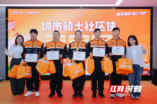 淘宝闪购“星城暖骑·快乐集结”城市骑士日活动则为劳动者们带来了专属的氛围与实在福利。活动设置了趣味互动游戏,让平日匆忙的骑手们在欢声笑语中放松身心、增进交流,同时也为骑手们准备了专属礼包。现场推出城市骑士·社区侠年度致敬片《寻Ta启事》,并对“社区侠”代表进行年度表彰。长沙城市骑士刘旭获得了“城市骑士社区侠”荣誉,以表彰他在长沙冰库勇救被困群众,传递社会正能量。